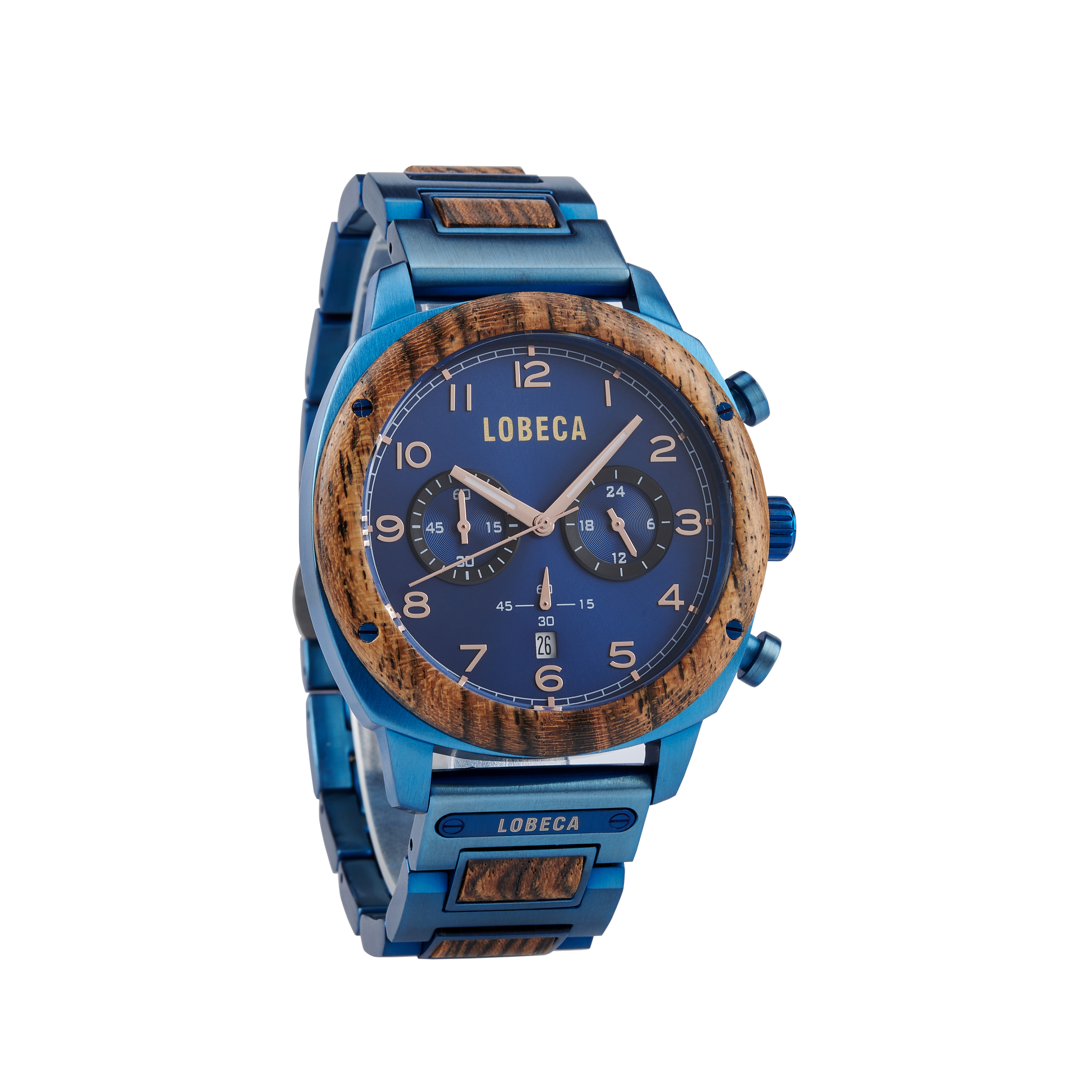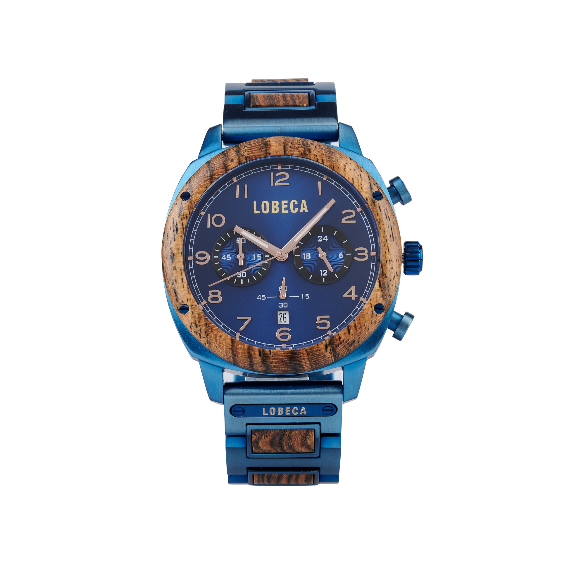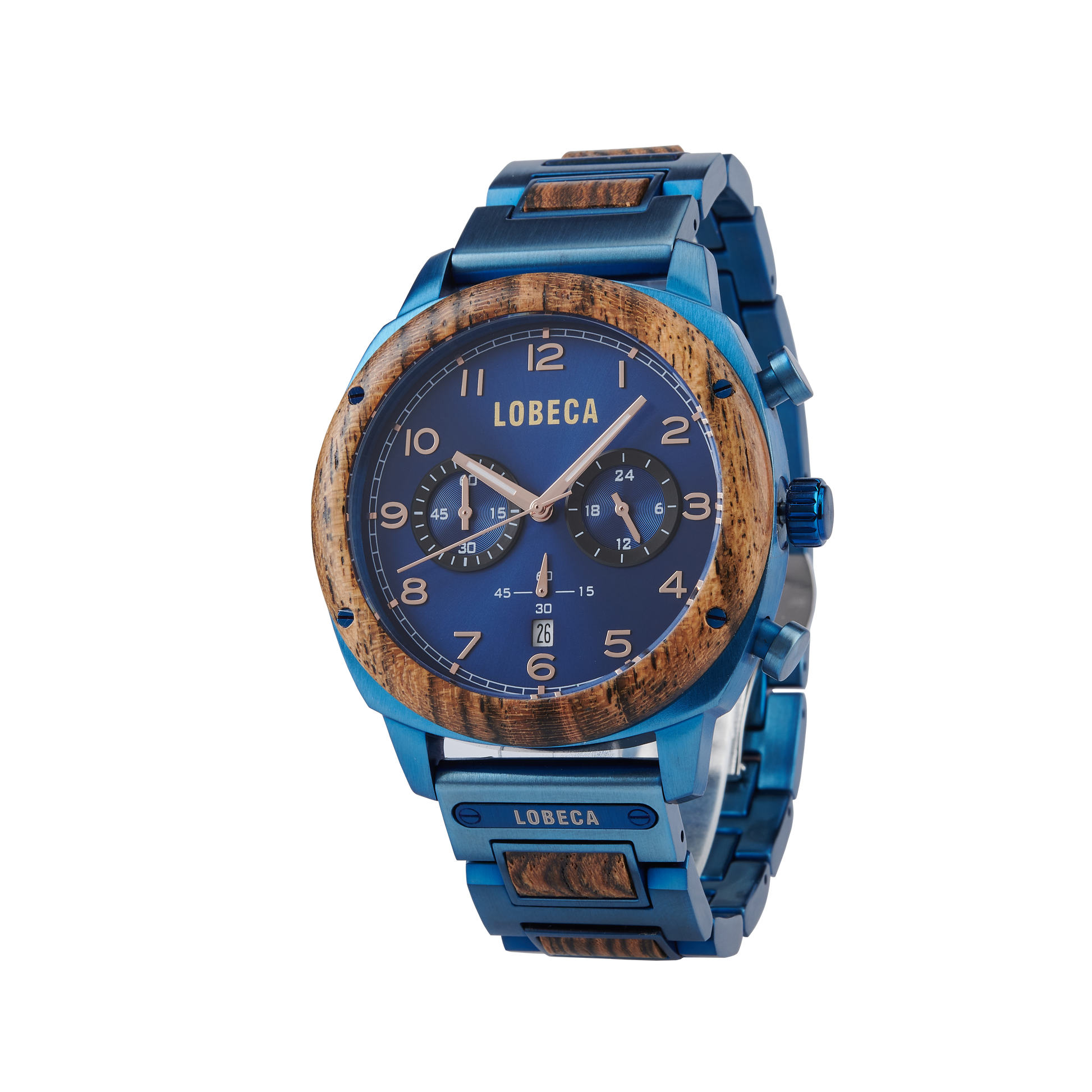 Unleash your inner adventurer with the LOBECA Blue Horizon Chrono - a men’s watch designed for those who crave distinction. This stunning timepiece merges rich, natural wood with sleek, azure steel, creating a harmonious blend of rugged charm and modern sophistication. The intricate chronograph and precision detailing make it more than just a watch - it's a symbol of ambition, confidence, and unique style. Whether in the boardroom or on an evening out, this watch commands attention.